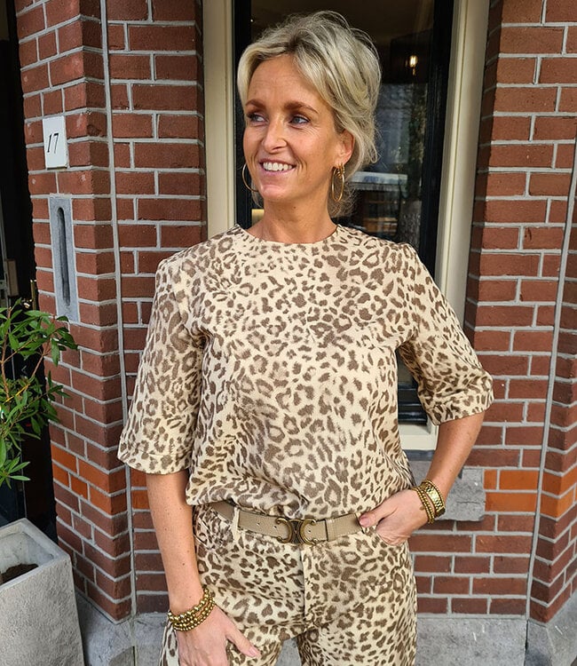 Beoordeel Azzurro Leo Print Soft Denim Top