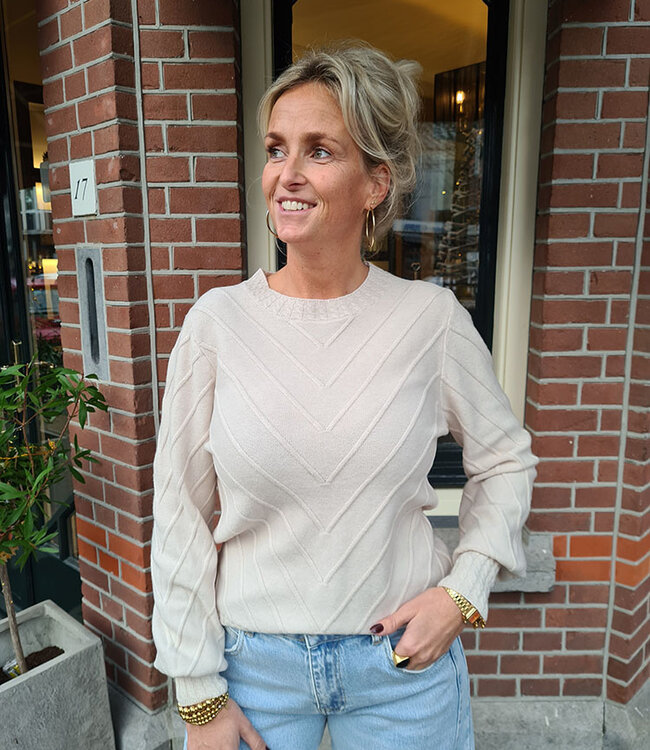 Basic Pofmouw Streepprint Crème