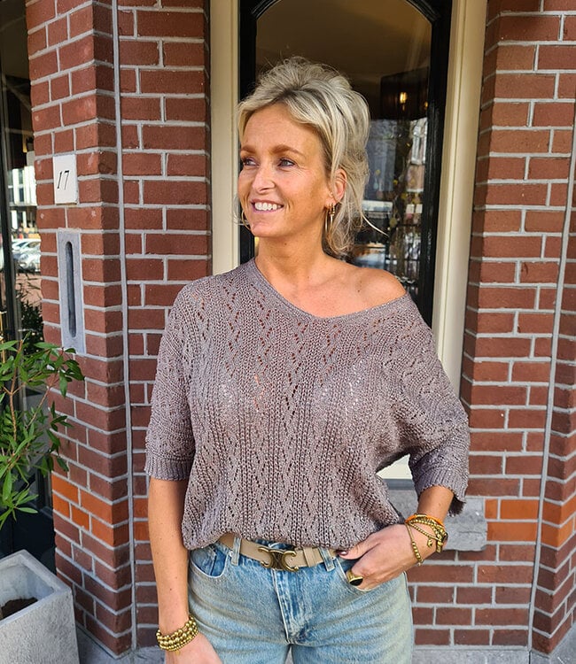 Gehaakte Top met Shimmer Taupe