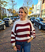 Knit Ballonmouw Streeptrui Bordeaux/Crème