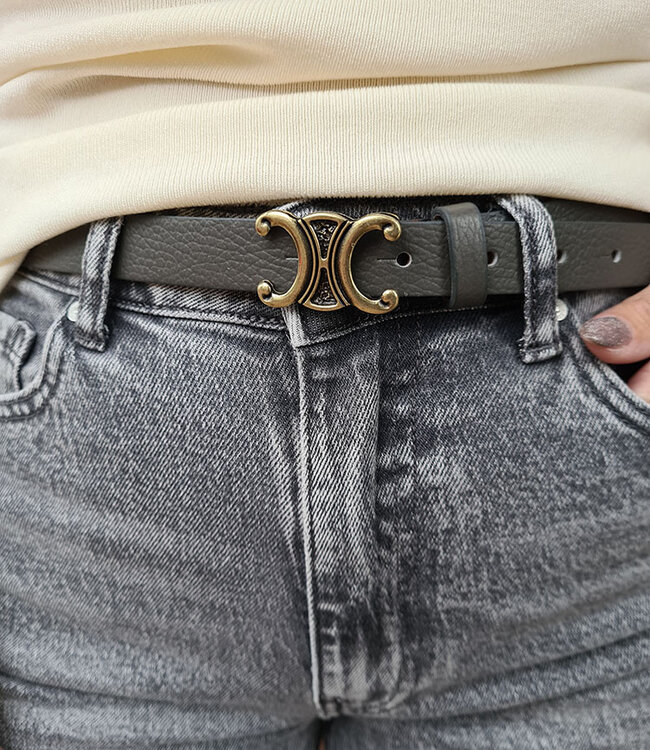Mooie look-a-like riem van leer met goudgesp Lees meer.