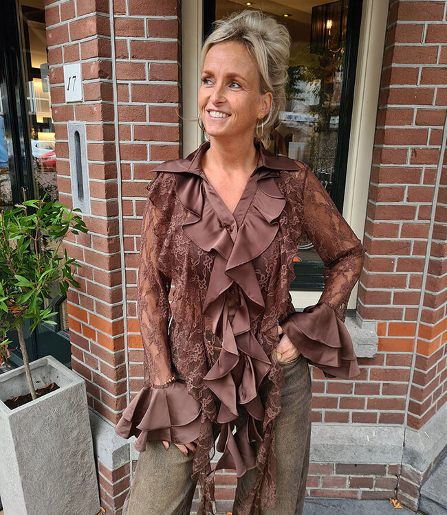 Luxe Blouse Ruffle/Strass Donkerbruin