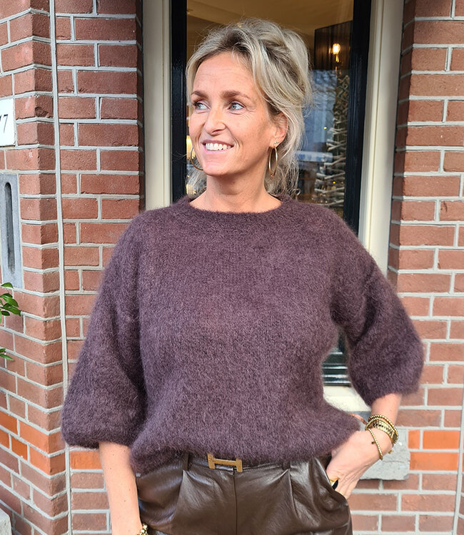 Longsleeve Effen Uitlopende Mouw Donkerbruin