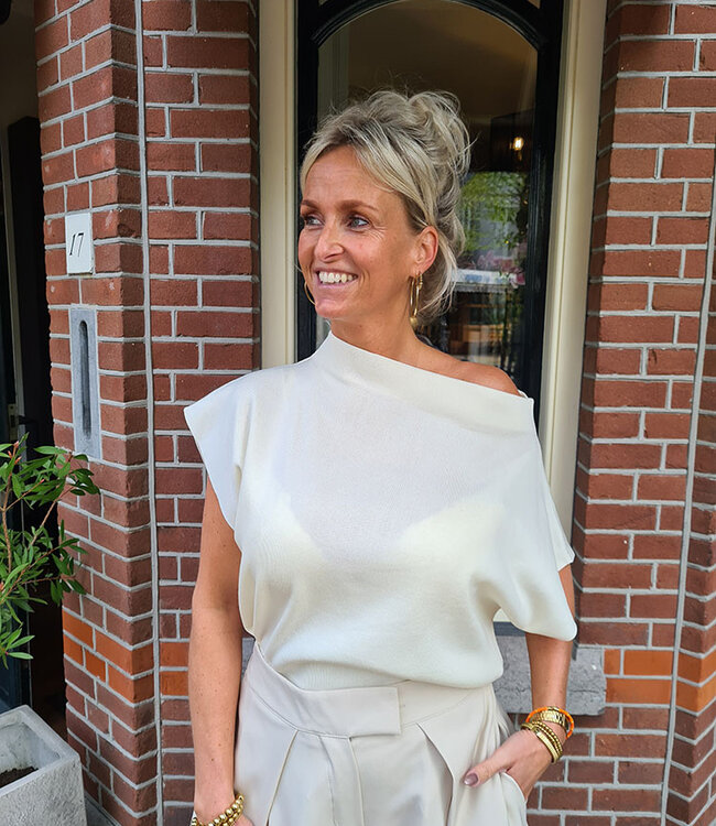 Schuine Hals Knit Top Crème