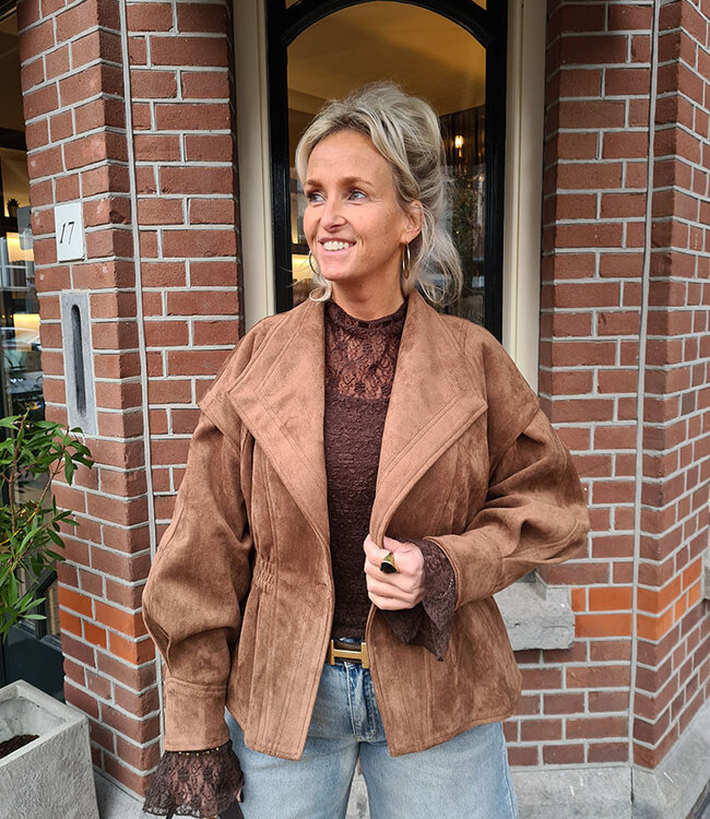 Suedelook Jacket Getailleerd Camel
