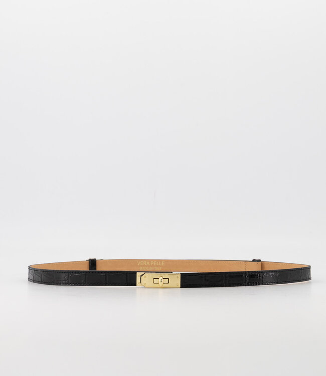 Verstelbare Ceintuur Lak Croco Zwart